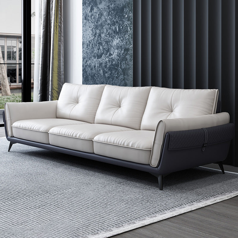 With a sturdy wood frame and metal legs, this sofa is sure to provide lasting support and durability. Bring a touch of luxury to your living room with this sofa.